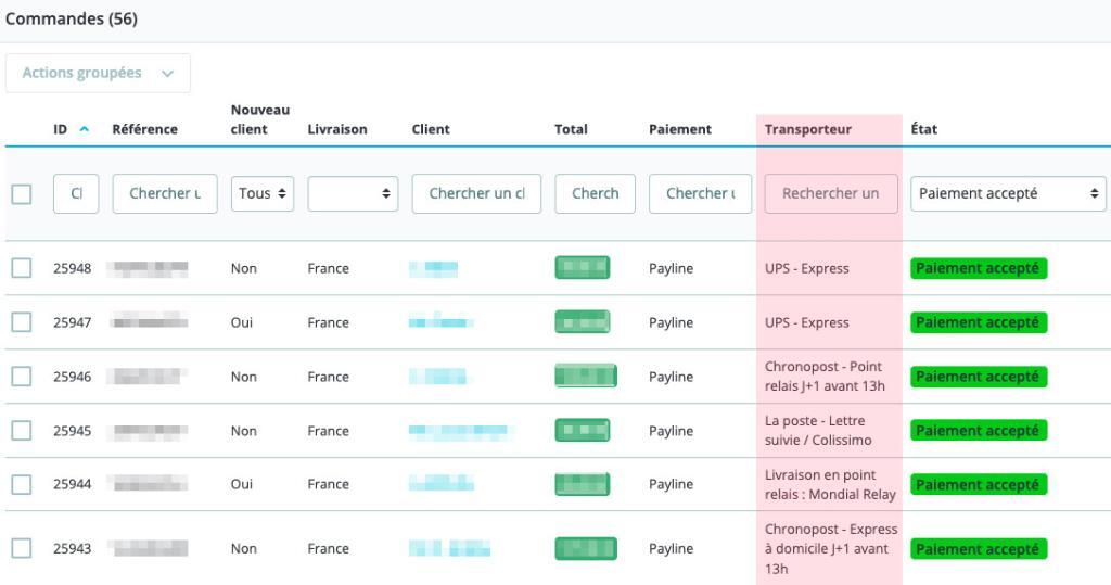 Ajoutez la colonne « Transporteur » dans la liste des commandes PrestaShop
